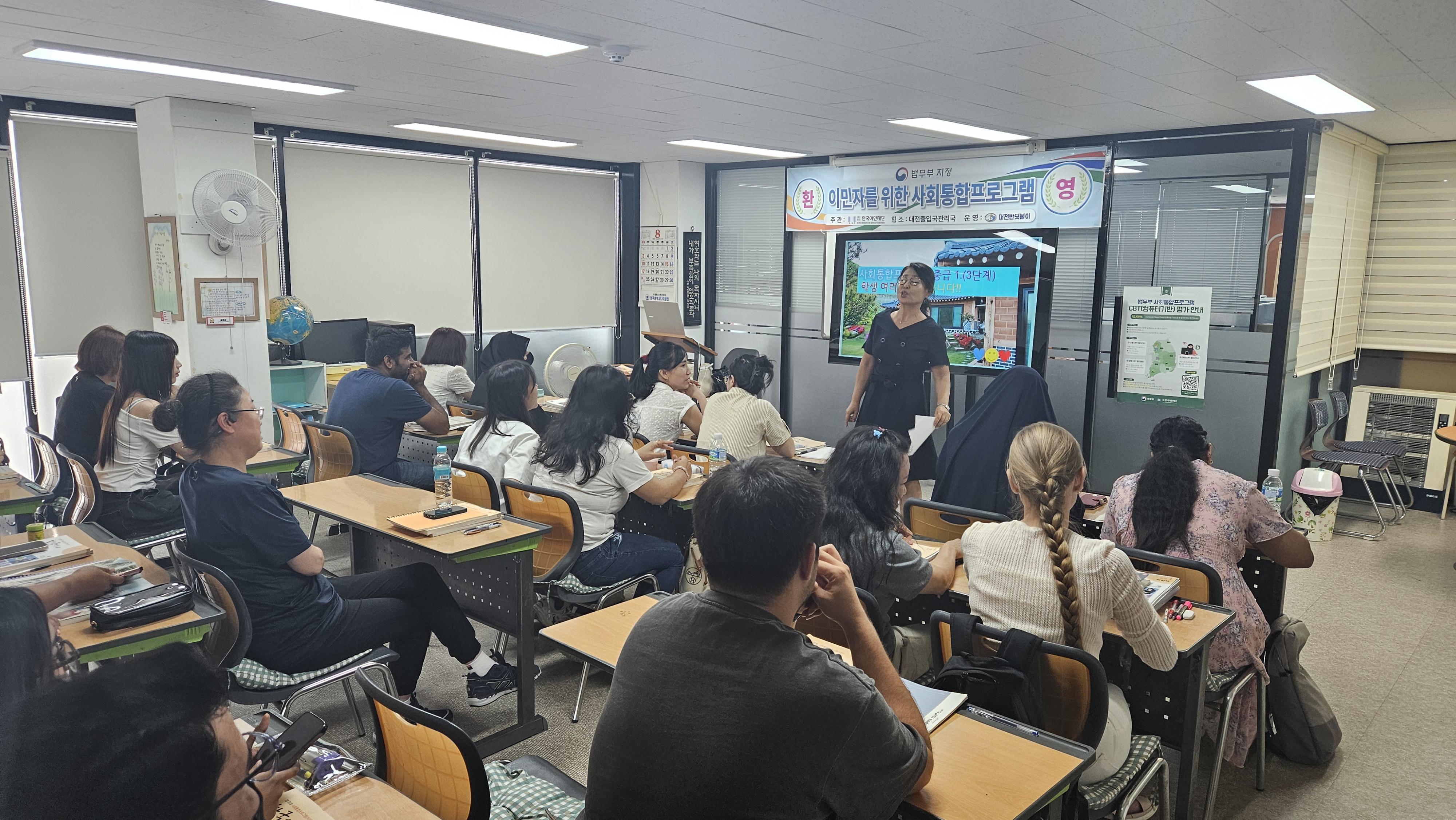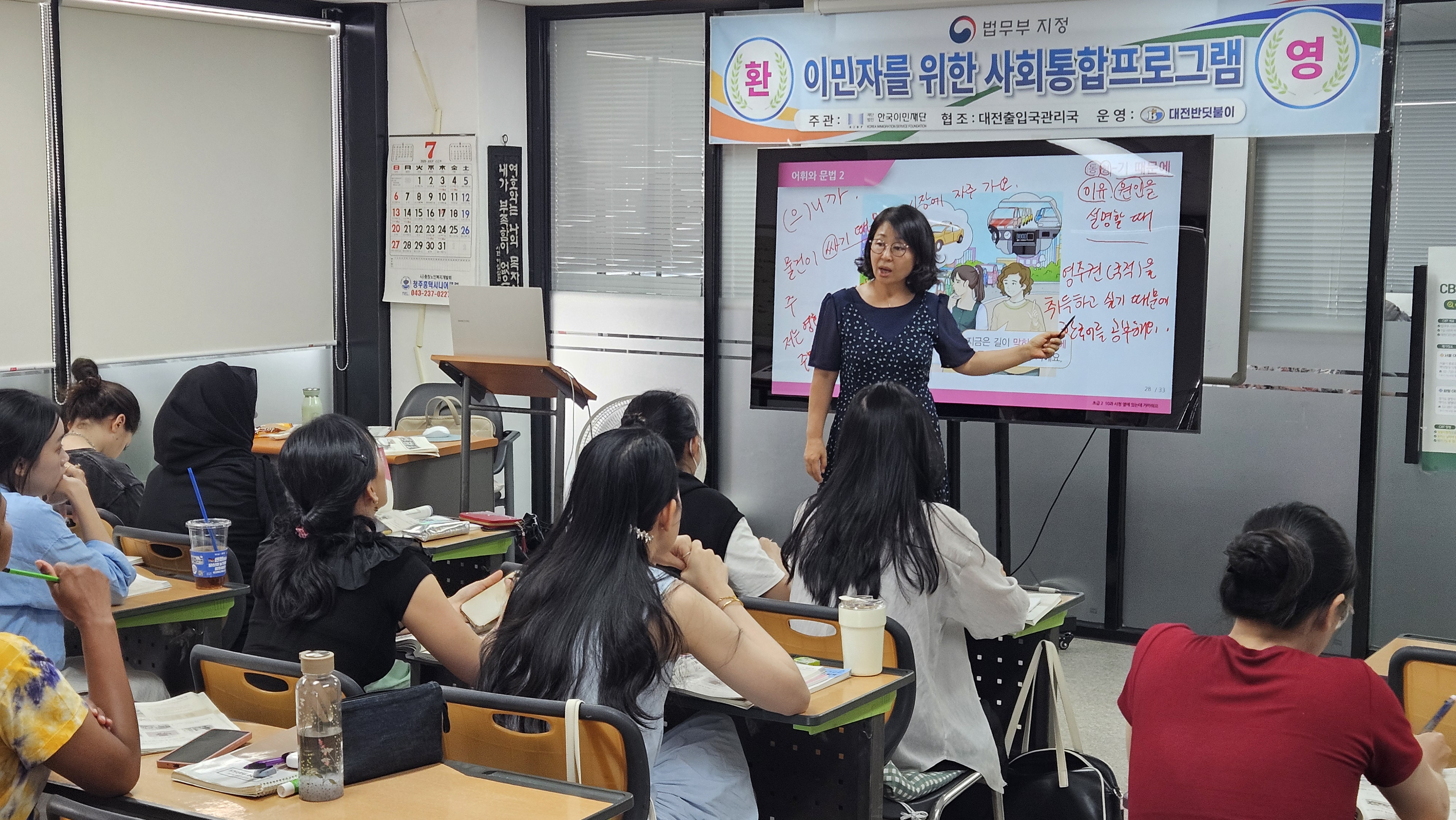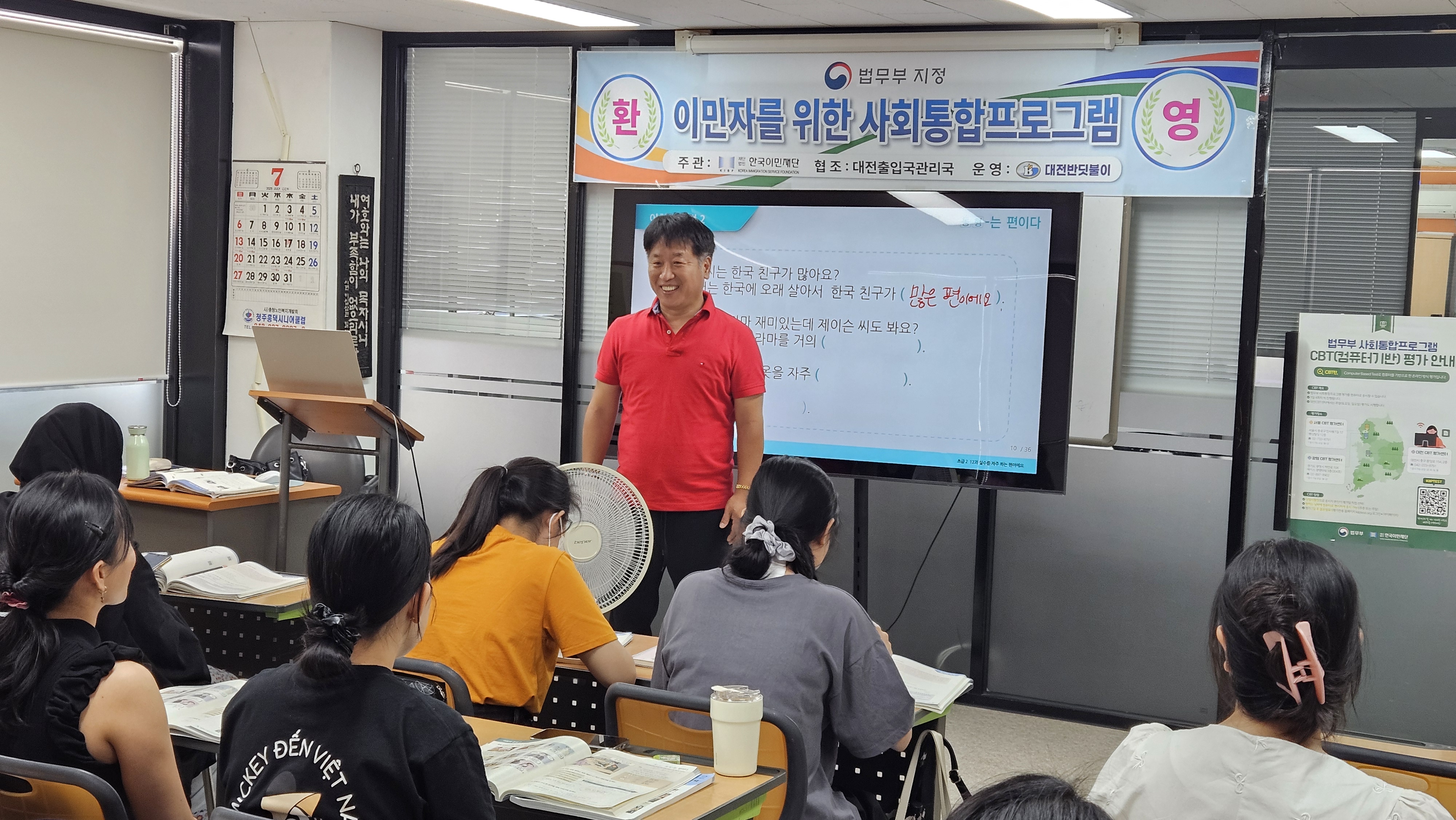 사회통합프로그램으로 운영되고 있는 한국어반(강사 김정미)이 뜨거운 폭염에도 모여서 함께 한국어를 공부하고 있는 모습이 무척 아름답습니다. 여기에 사진을 올려드립니다.