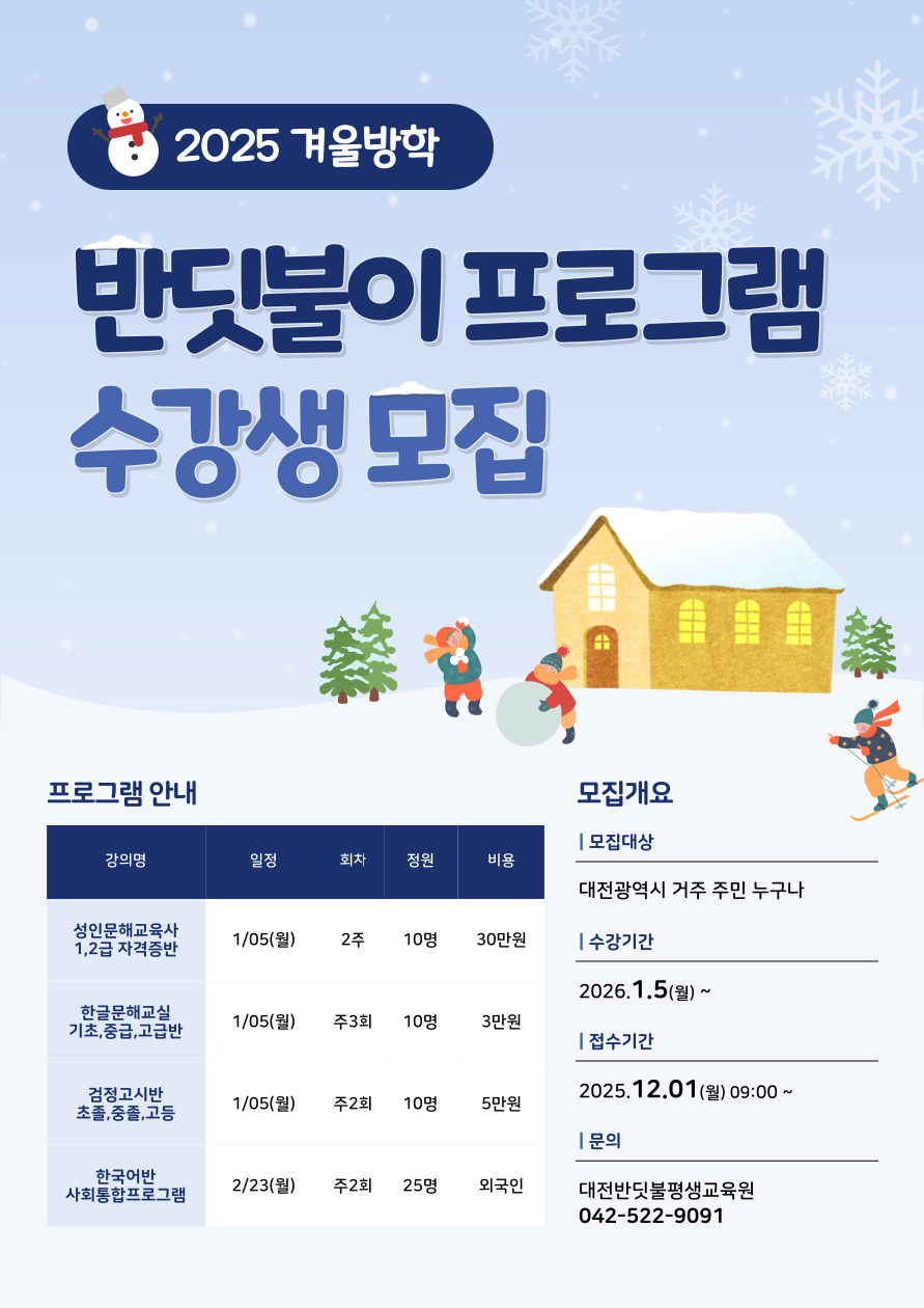 겨울방학 프로그램 수강생 모집