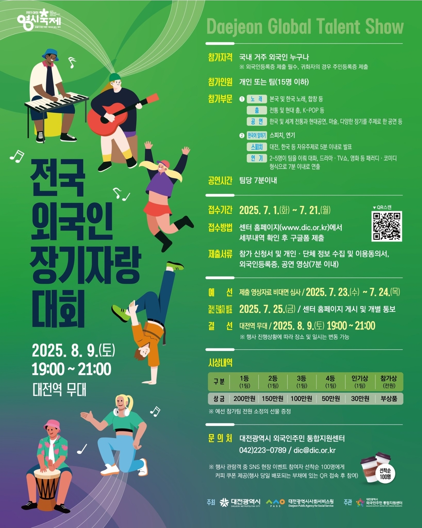 8월 9일 저녁7시부터 9시까지 대전역 광장 무대에서 전국 외국인 장기자랑 대회가 열립니다. 많은 관심과 관람 바랍니다. ^^ 대전0시축제 화이팅입니다.