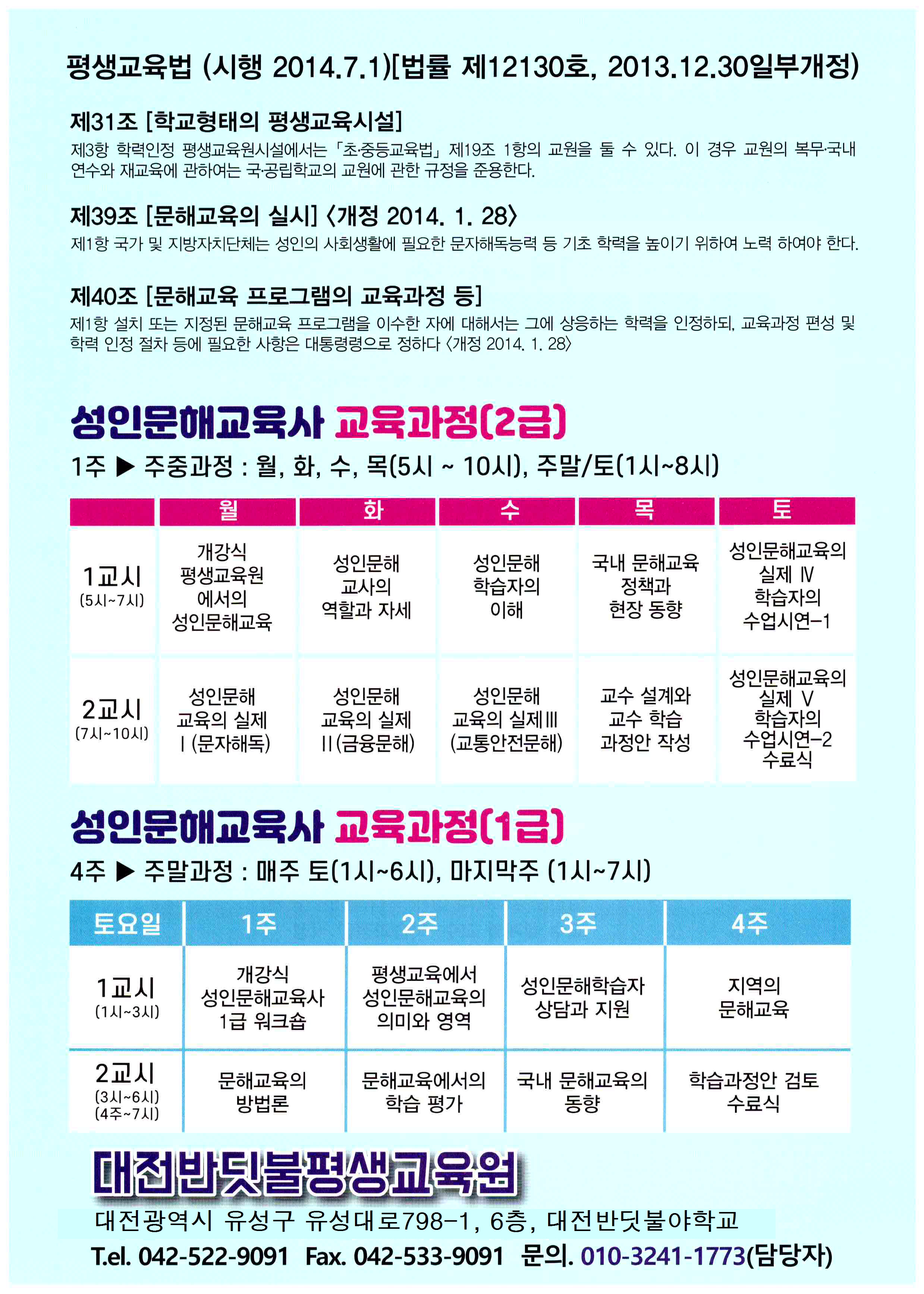 대전반딧불평생교육원에서는 민간자격증인 성인문해교육사 1,2급반을 운영하고 있습니다. 성인문해교육에 관심이 있으신 분들께서는 많은 관심과 문의 바랍니다. ^^
